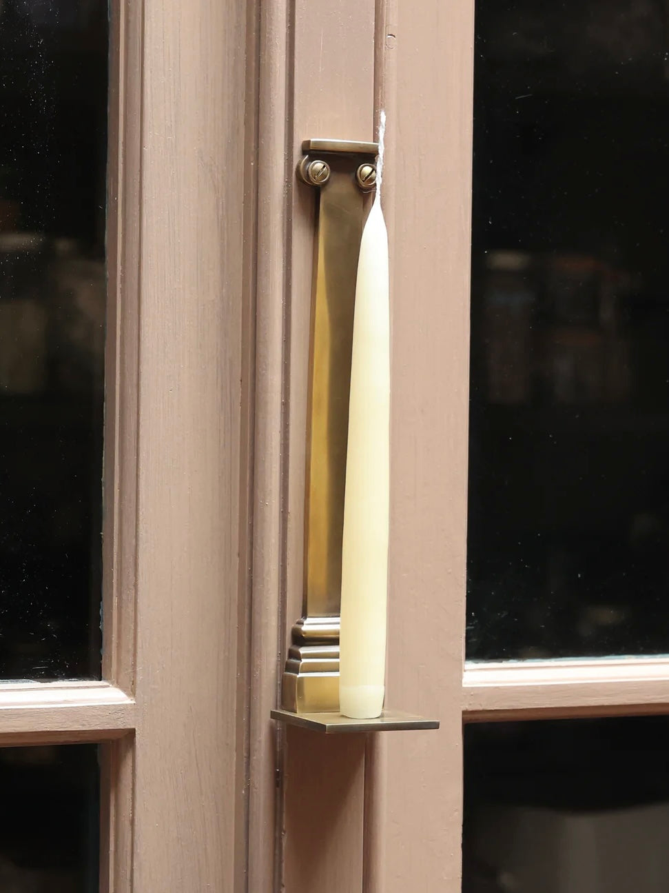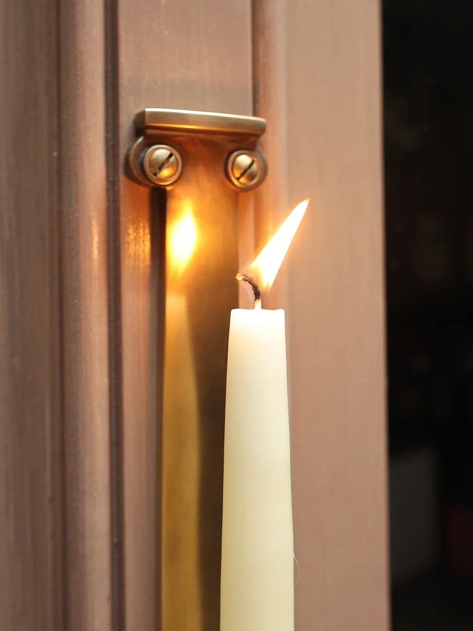 Crafted from solid brass and inspired by ancient Greek architecture, our wall mounted sconces feature slotted screws and a threaded base to secure natural beeswax candles in place. Watch the dancing flame reflect off the brass shaft for a warm, ambient glow. Perfect for adding a touch of elegance to any space.
