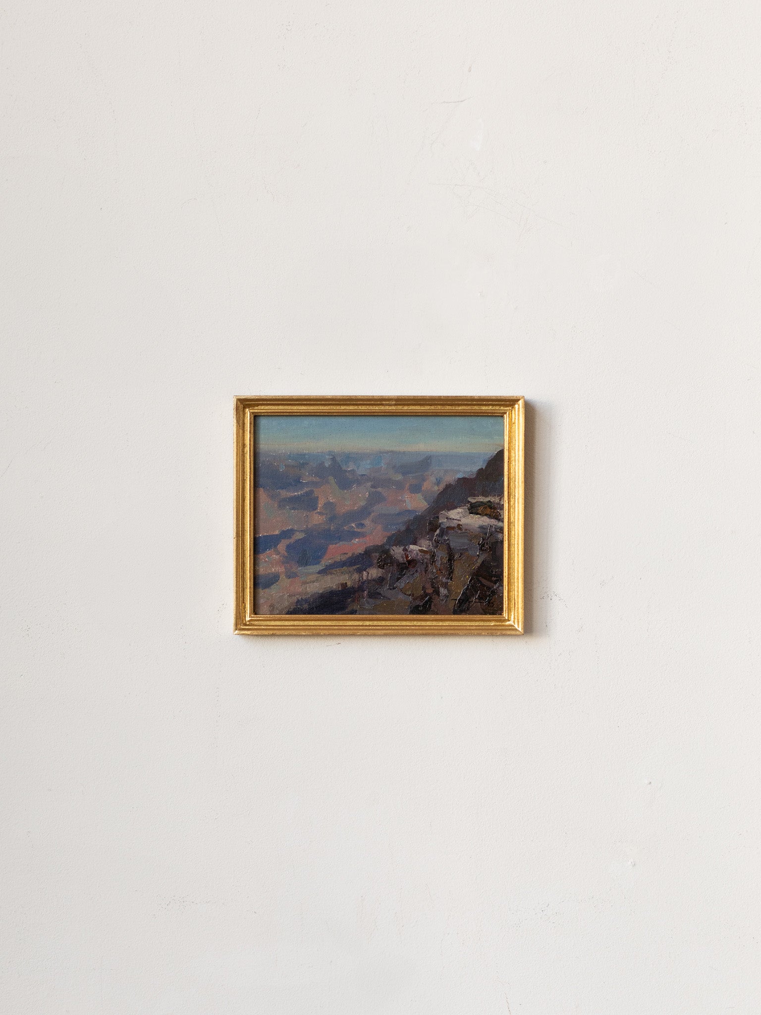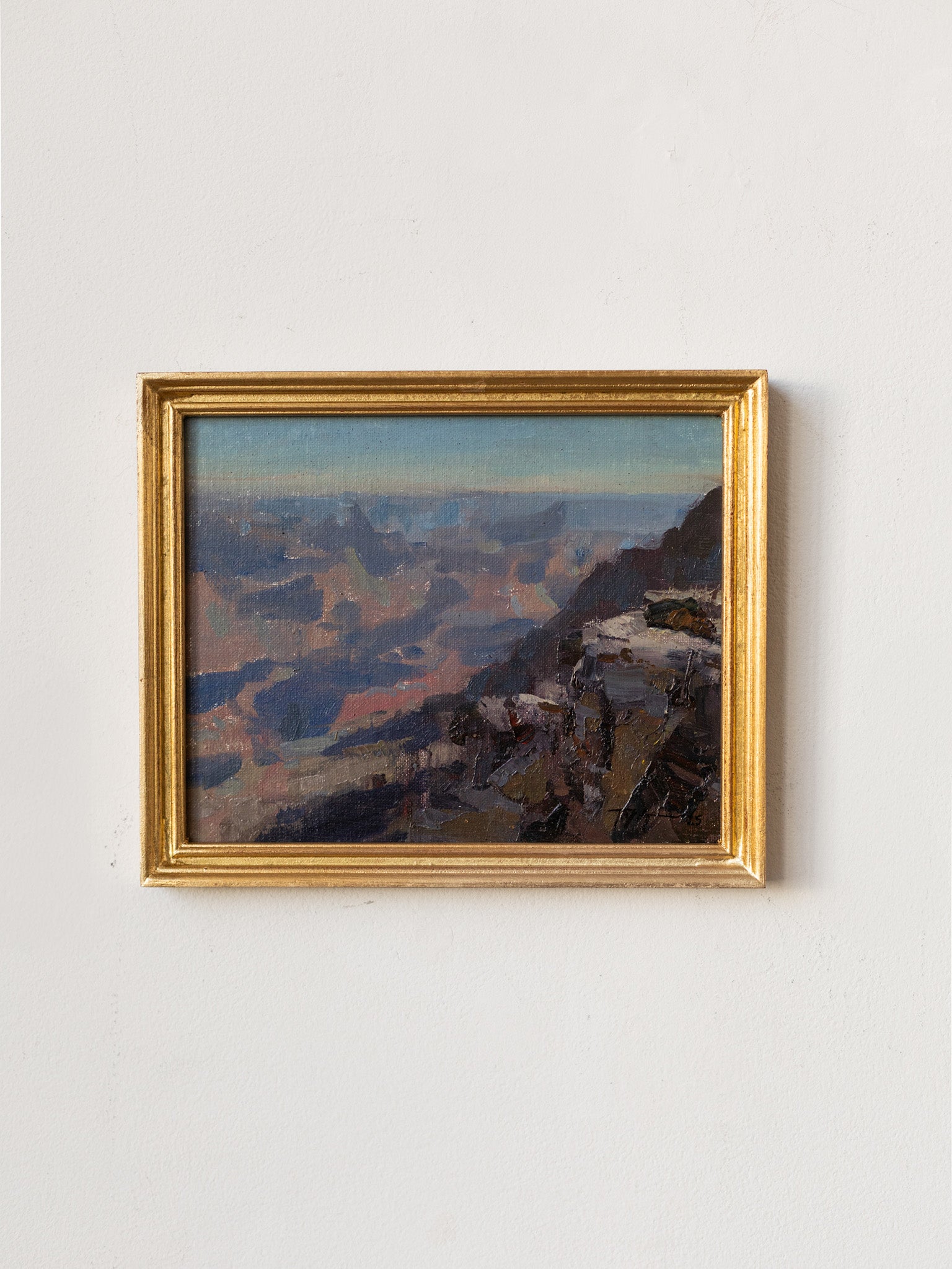 With its softened edges and atmospheric palette, Grand Canyon Study II offers a beautiful impression of the canyon’s vast and weathered beauty. Hazy blues, dusty rose, and deep shadowed browns stretch across the distance, while the darker cliff in the foreground gives the scene a sense of depth and vantage. It carries the feeling of standing at the canyon’s edge as the day begins to soften and the landscape settles into evening light.