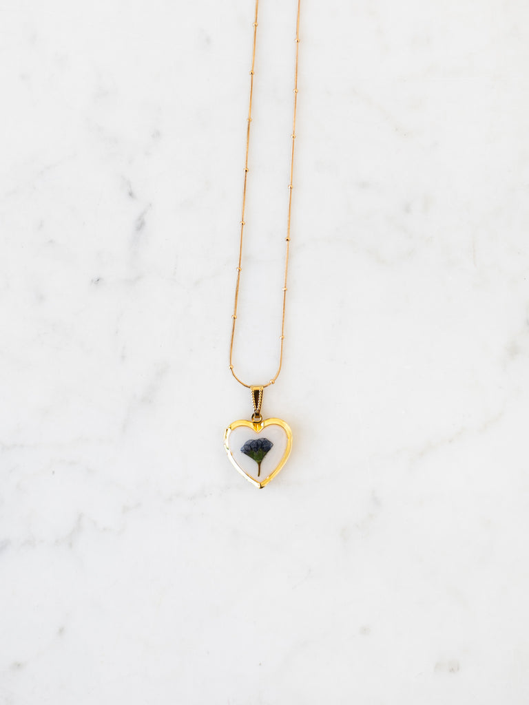 1" heart locket pendant with epoxy and wildflowers