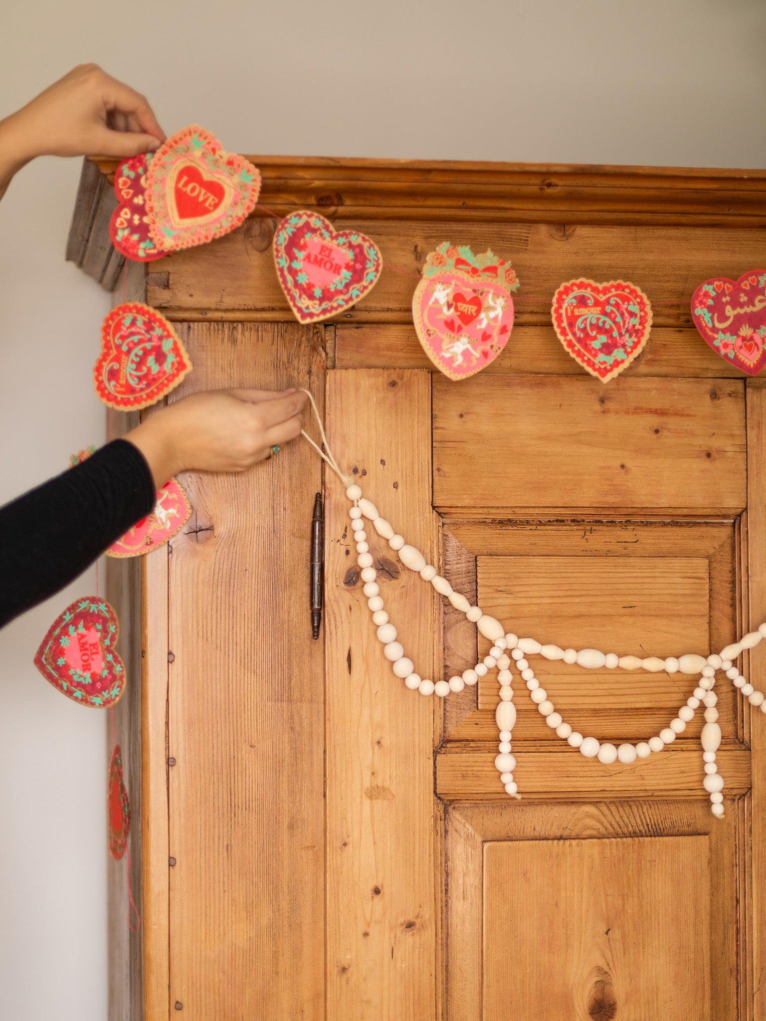 The red looped garland is an exciting pop of color for Christmas or Valentine's Day.