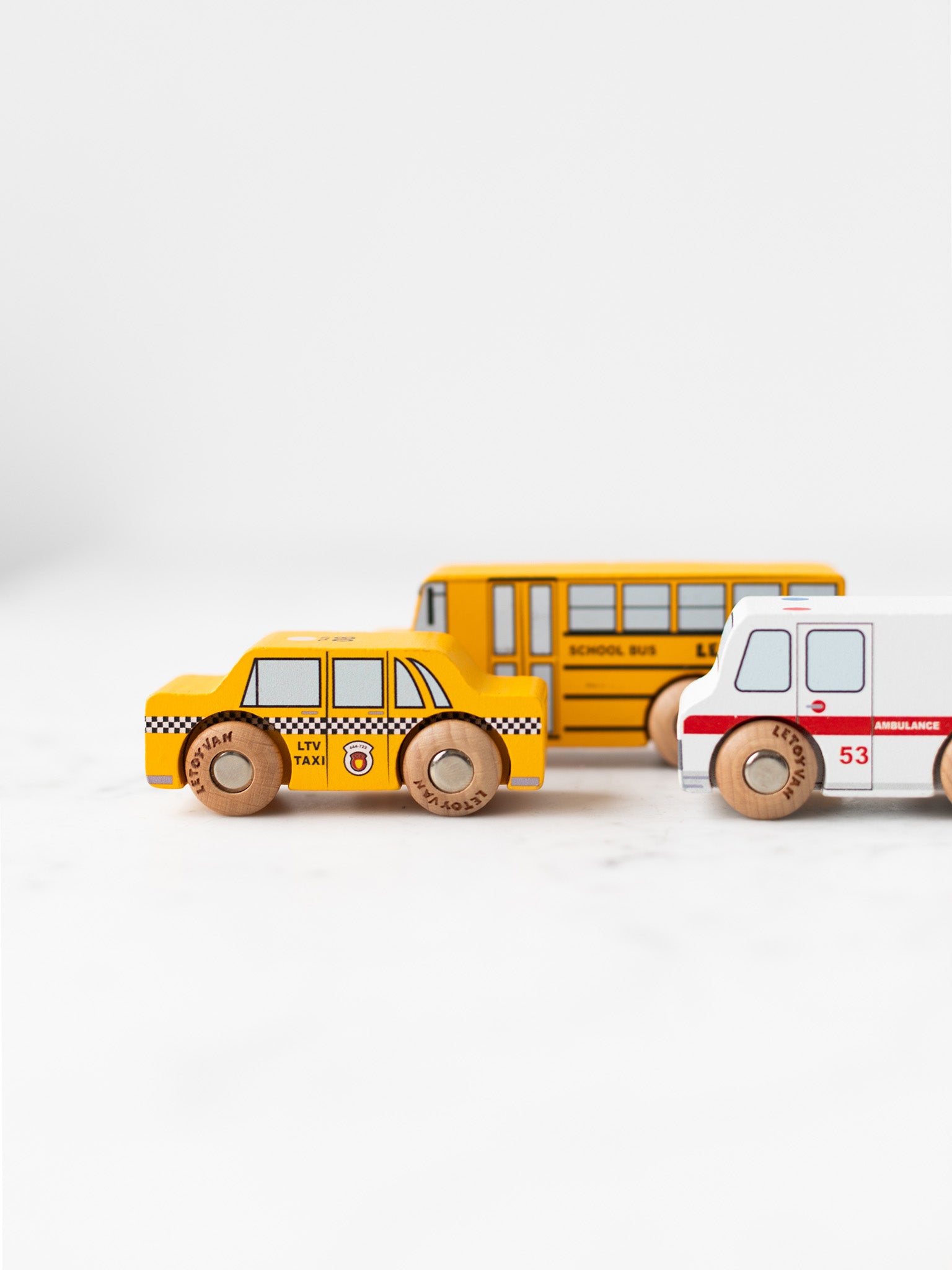 This set of six wooden vehicles brings everyday adventures to life, from school runs to daring rescues. Each piece, crafted from sturdy wood, can withstand any imaginary traffic jams, crashes, or high-speed chases. Bright, colorful designs encourage early learning, color recognition, and storytelling, while the wheels are compatible with all standard train tracks. It’s a delightful addition to any child’s toy chest.