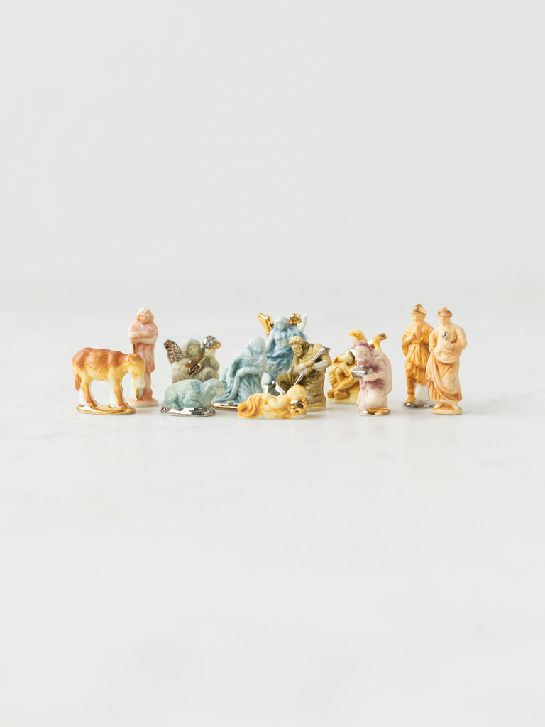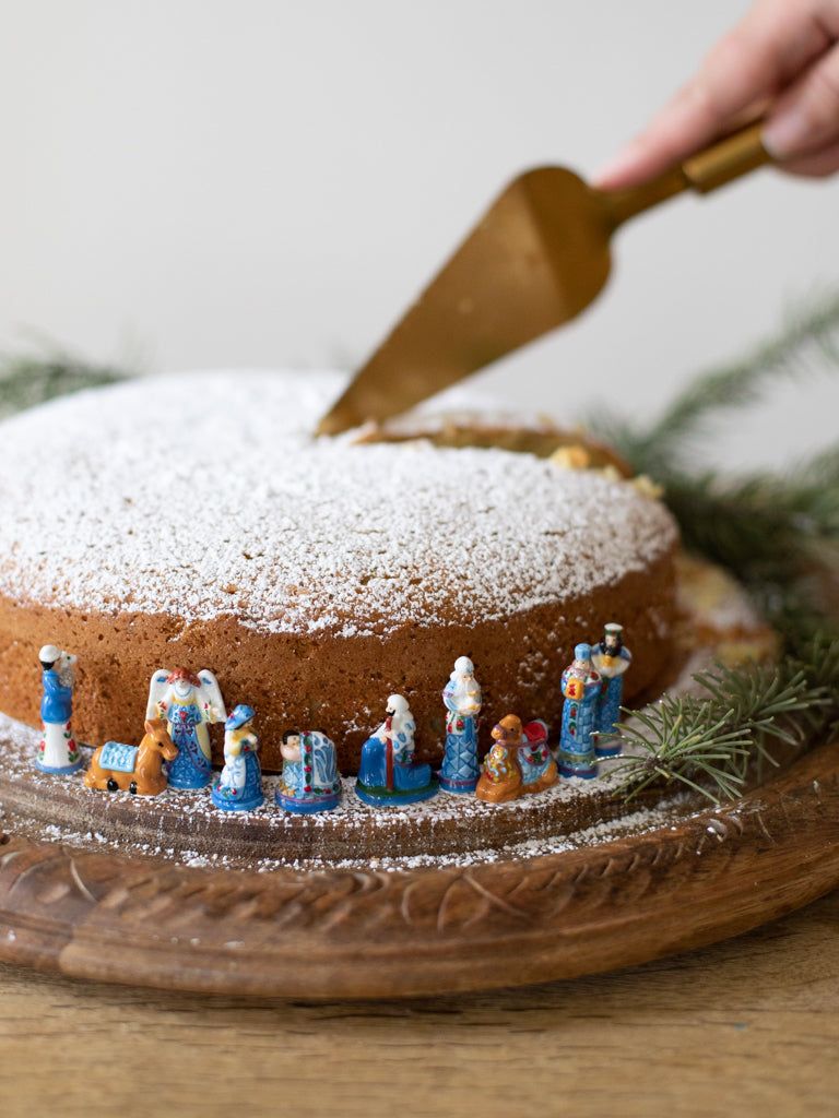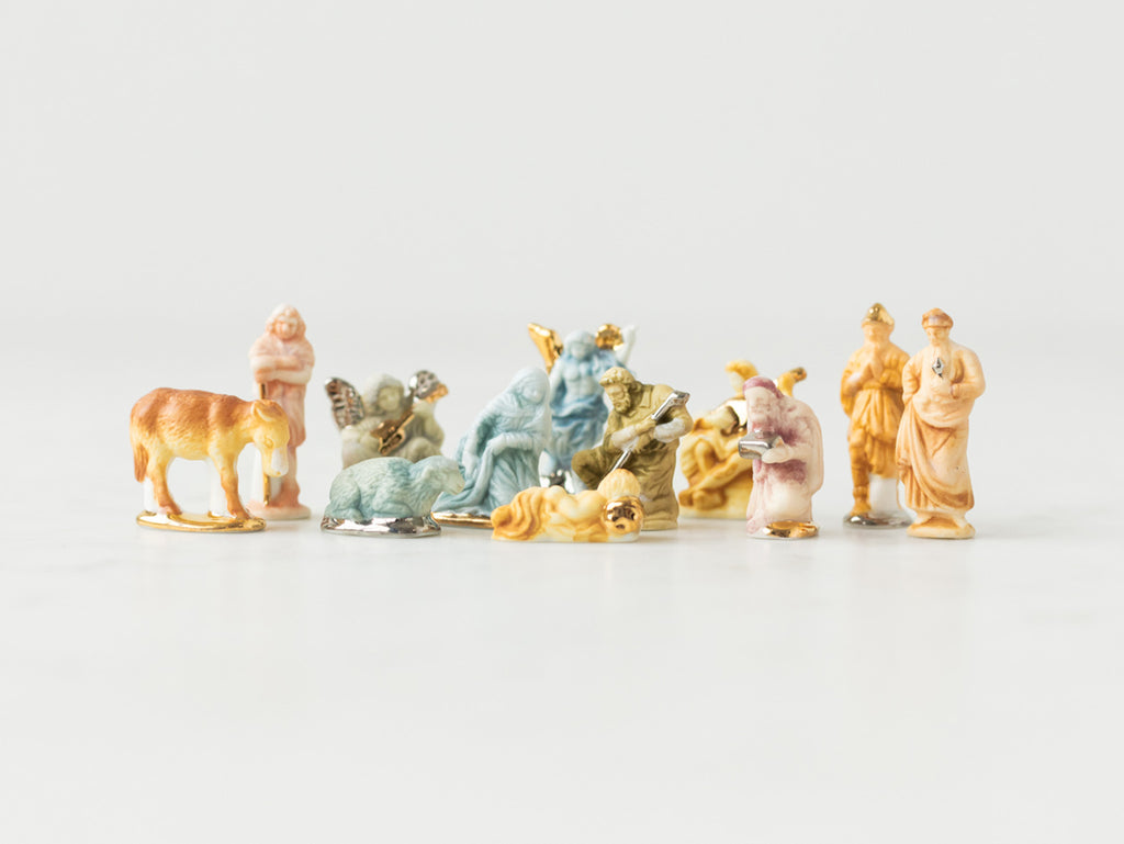 Have you ever celebrated the Epiphany with a King Cake? These adorable little ceramic nativities, known as feves, are from France. Each year a French family will bake the baby Jesus into a cake. Whoever gets the slice of cake with the Christ Child in it is crowned king for the day!