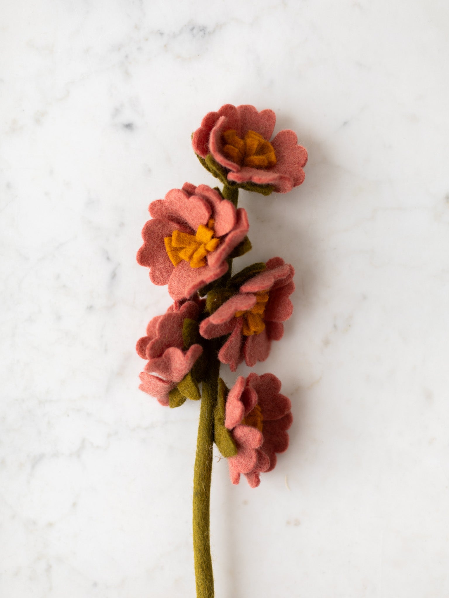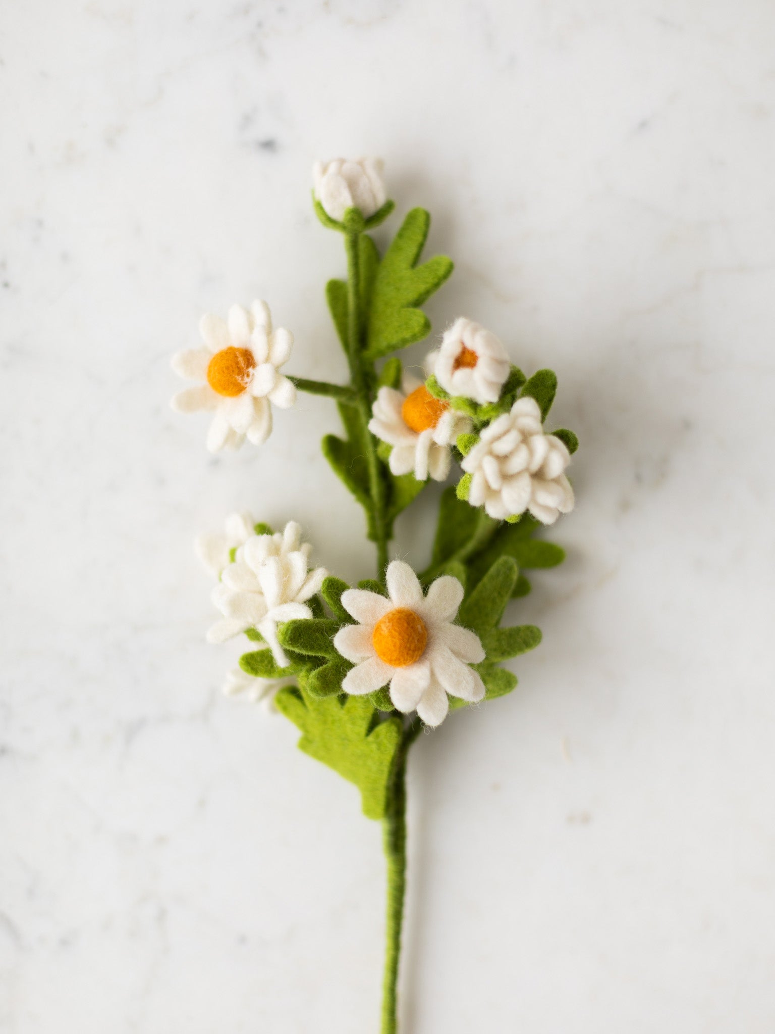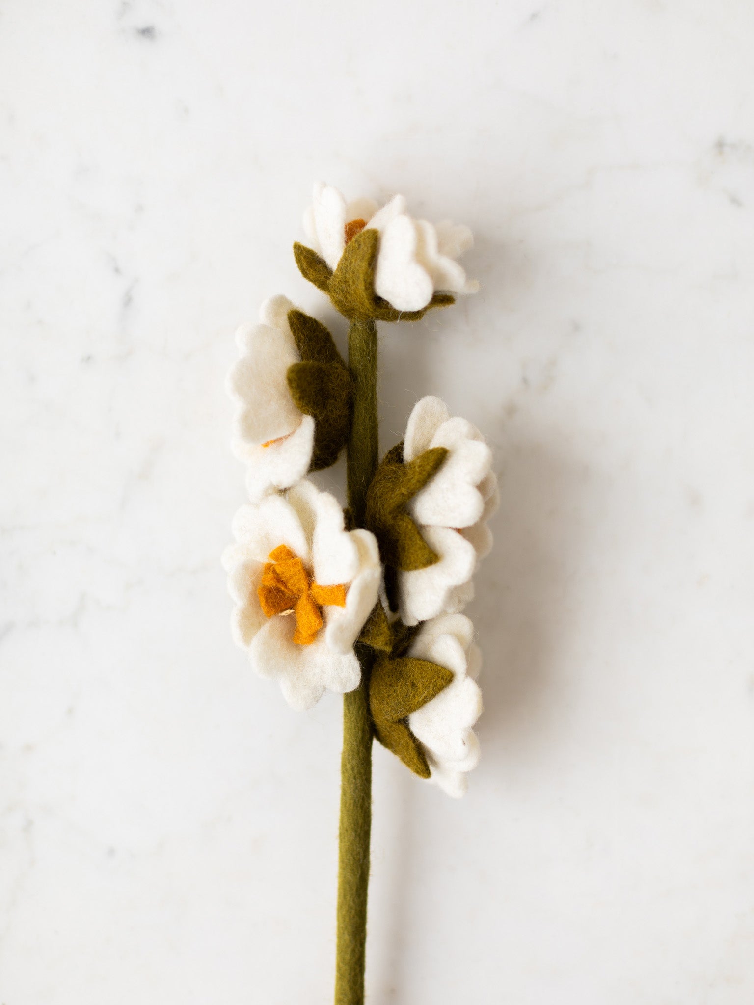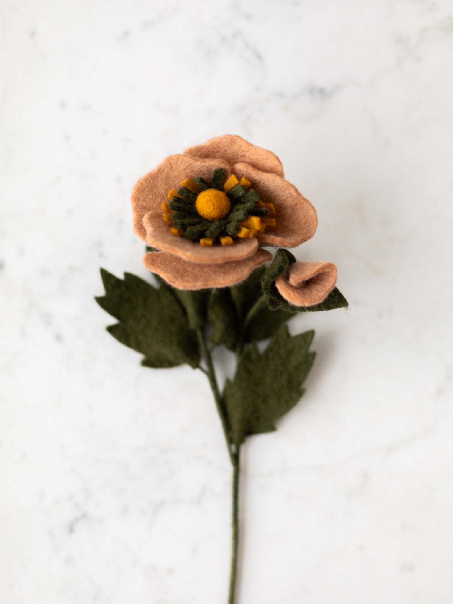 These handmade felted wool flowers bring the feeling of fresh blooms into the home, with varieties ranging from chamomile and peony to cherry blossom, dogwood, and soft hydrangea bundles. Each stem can be styled on its own for a simple statement or gathered together to create a fuller arrangement that lasts through every season. A flexible wire stem gives each flower gentle structure, making it easy to display in a tall vase or tuck into an existing bouquet.