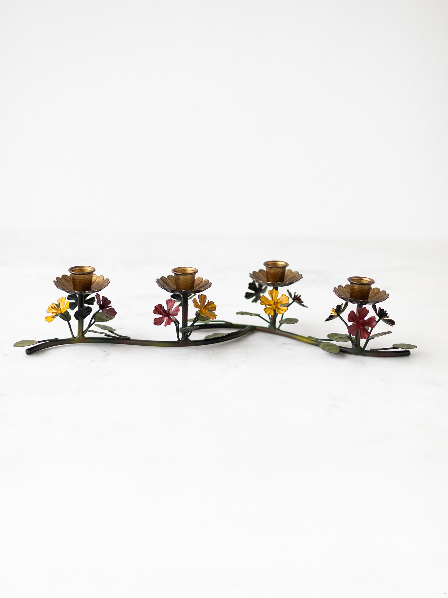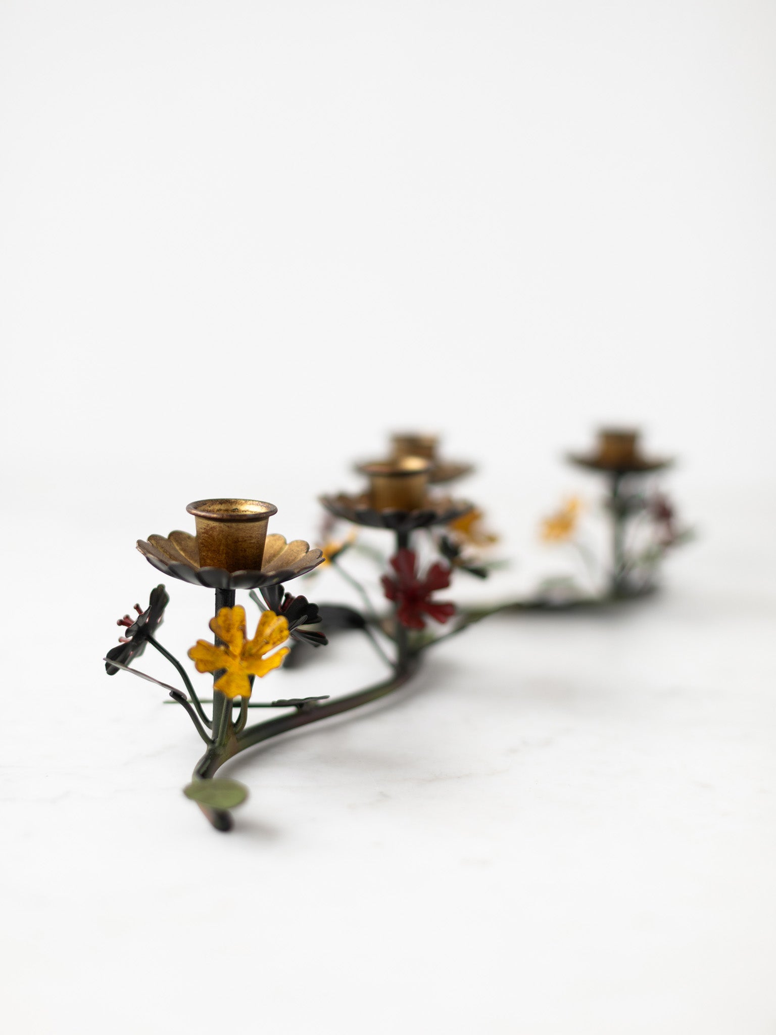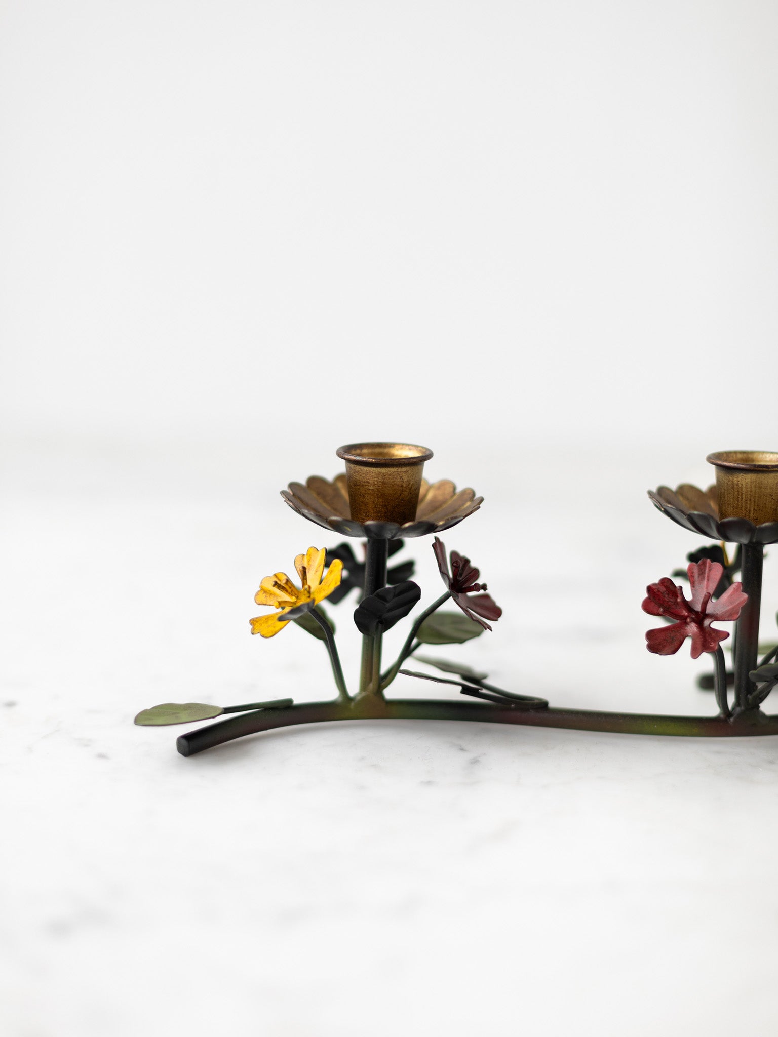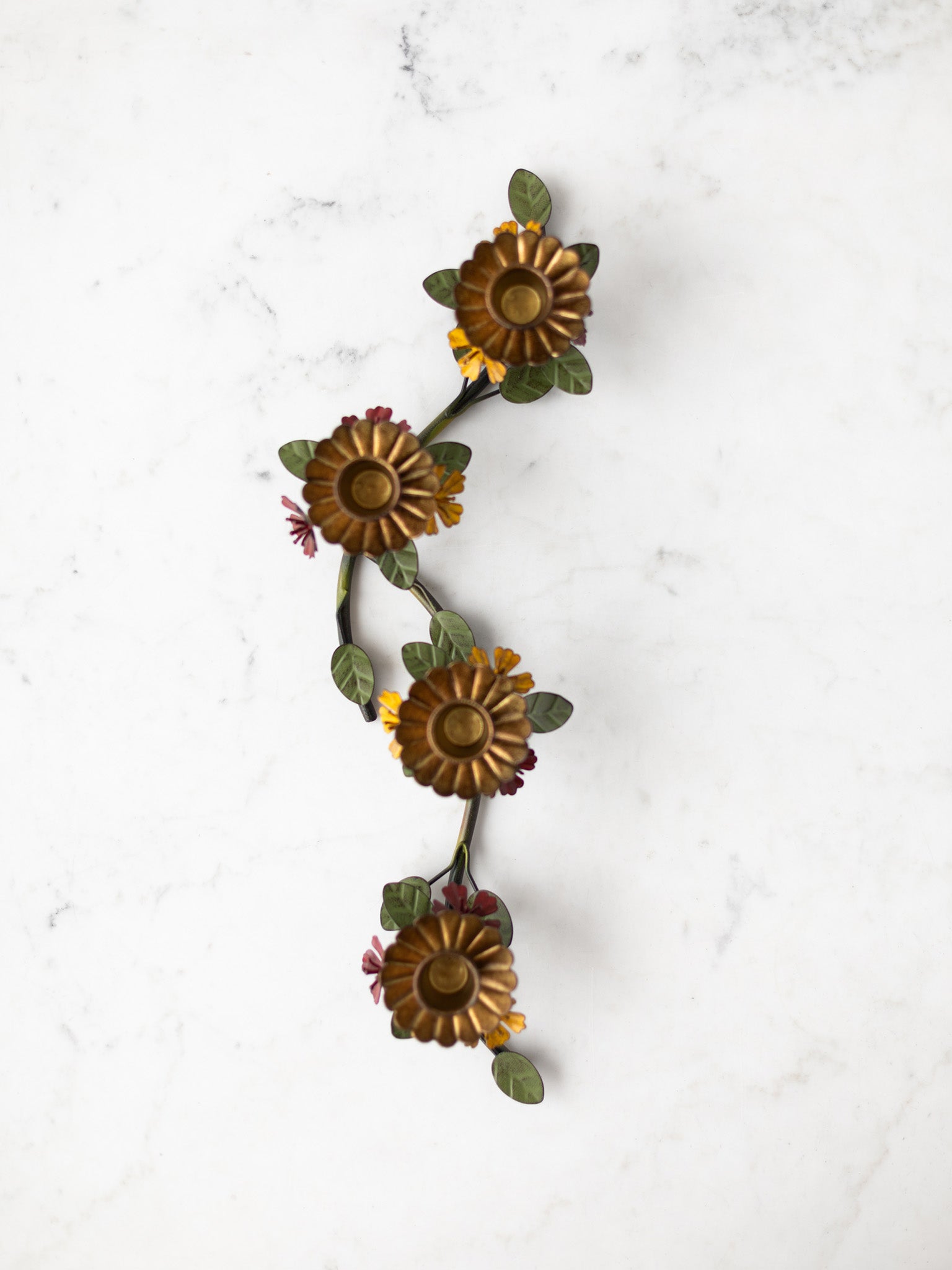 Floral branches paired with antique brass form a taper holder with vintage character. Style it on its own or line several down the length of a table. It feels just as fitting for an ordinary dinner as it does for a thoughtful gathering.
