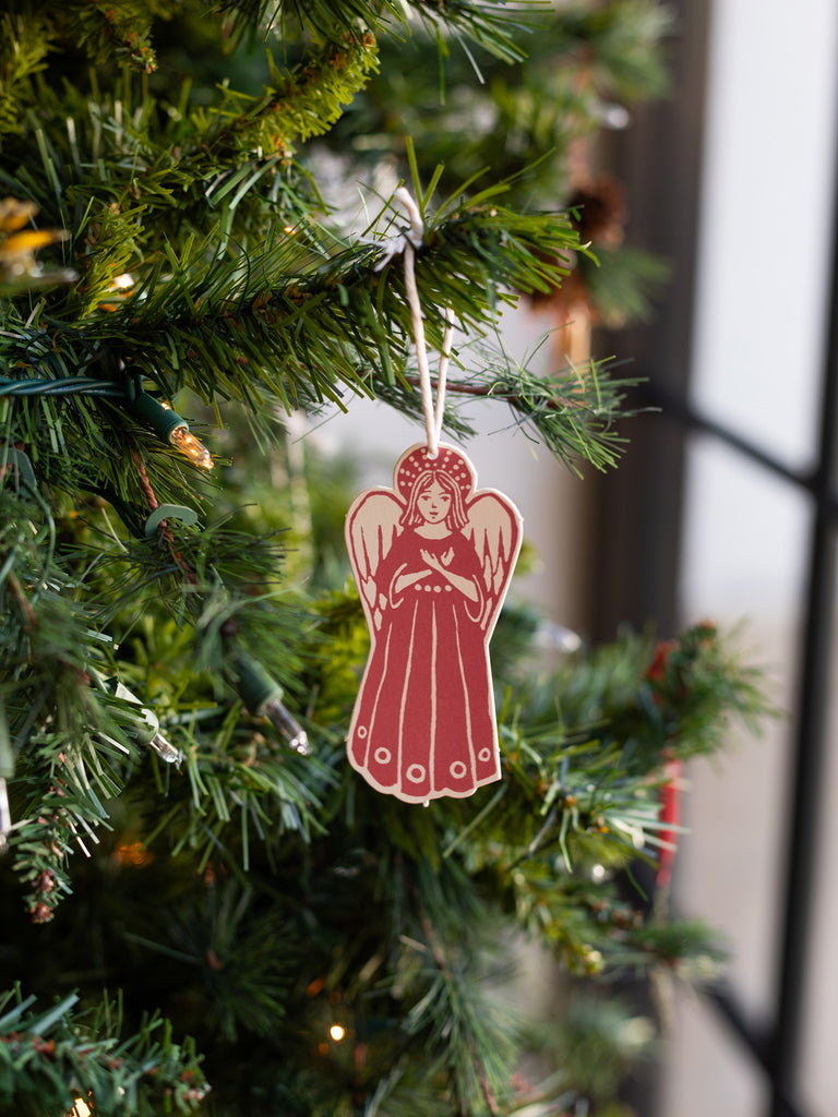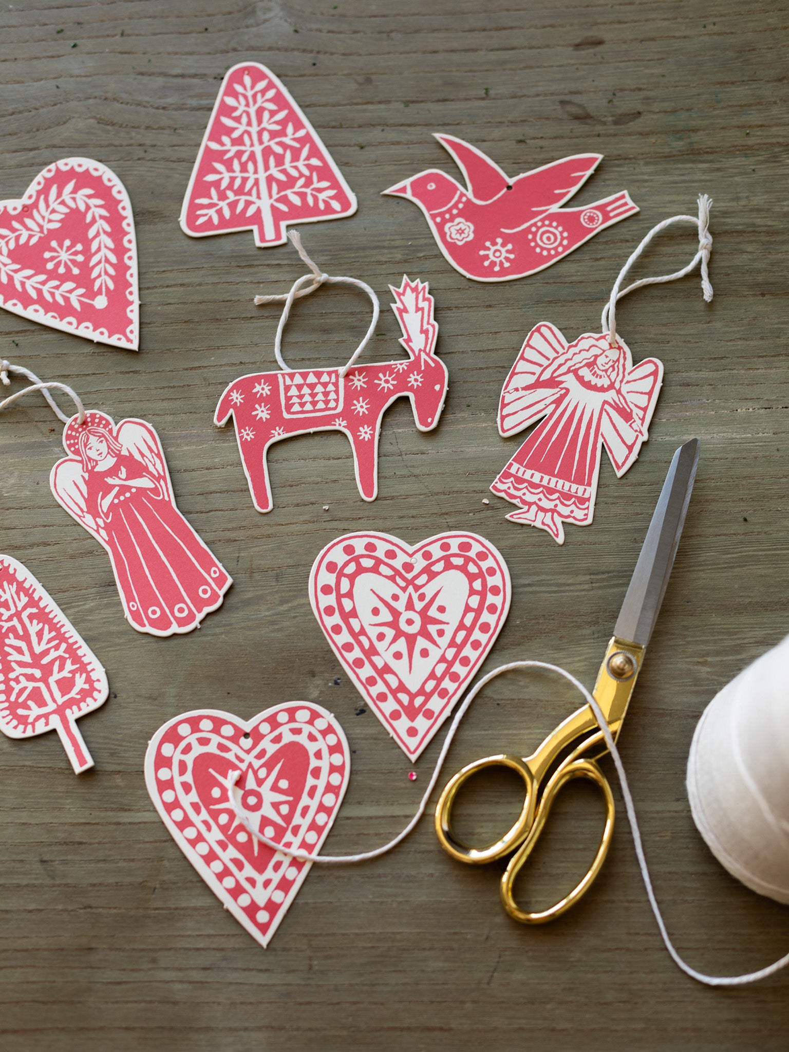 These folk art Christmas decorations feel like something you’d stumble across in a old storybook. Printed on sturdy ivory card, they’re ready to be popped out and hung on the tree, strung along a garland, or tied to gifts with ribbon or twine. Their festive design and colors bring a timeless cheer that feels right at home throughout the whole season.