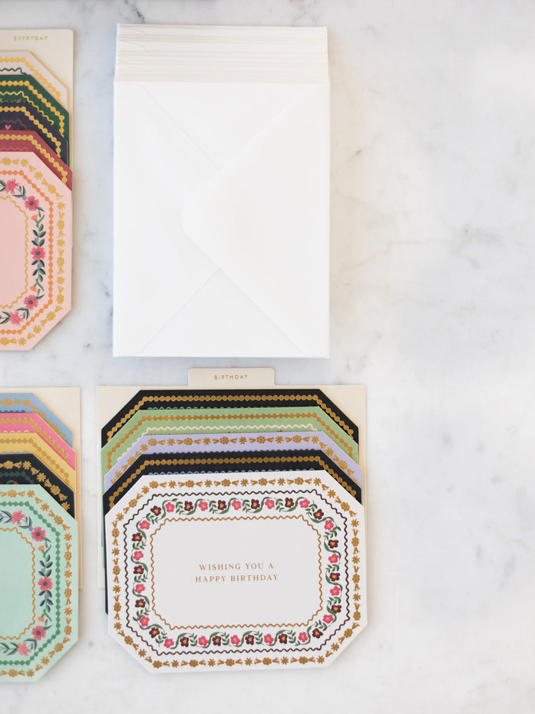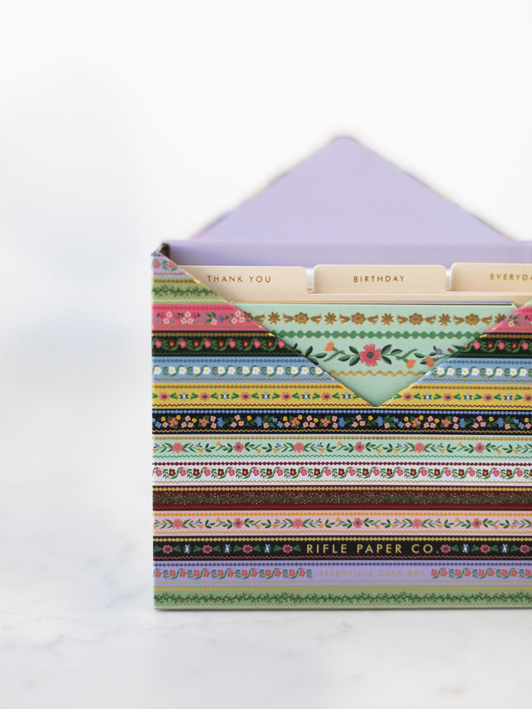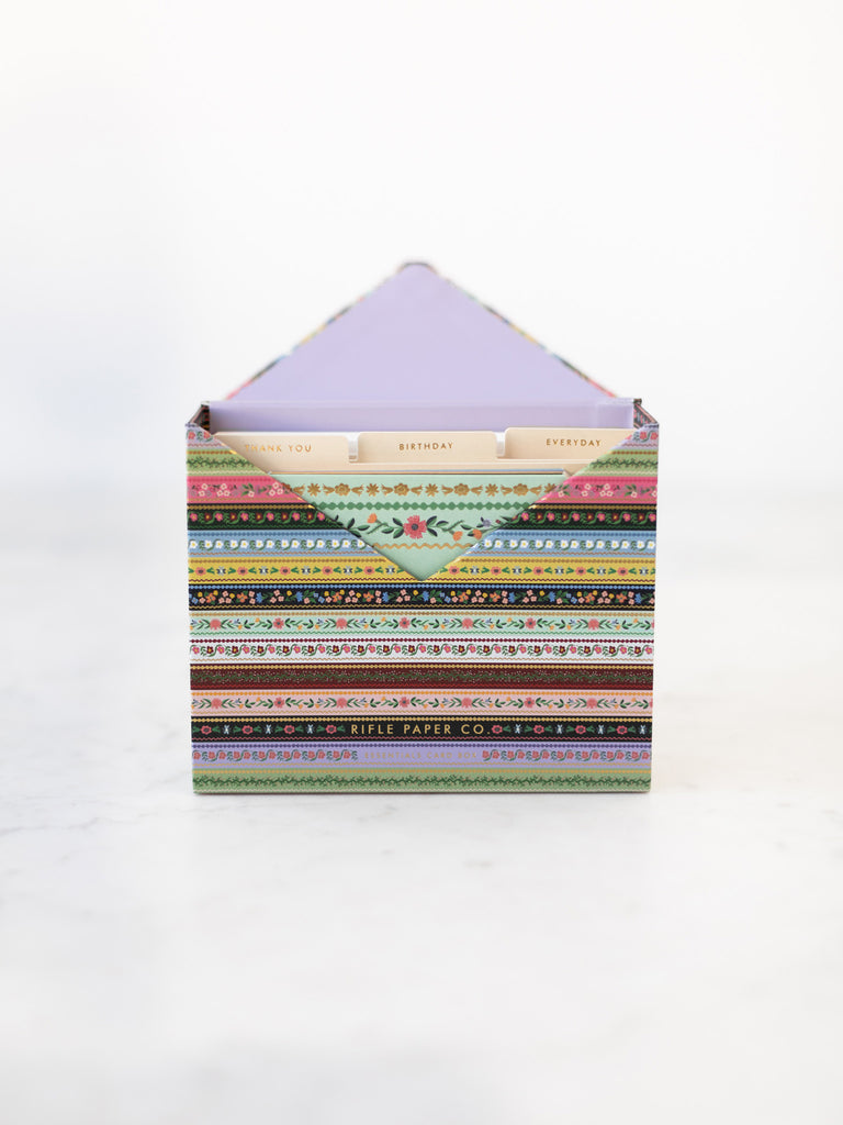 The Gemma Essentials Card Box is made for holding little notes that carry meaning. Each card features a cheerful, colorful pattern with gold foil accents, perfect for birthdays, thank yous, or simply letting someone know you’re thinking of them. Dividers keep the cards neatly organized, and the magnetic closure keeps them safe until the right moment to send. When the cards run low, you can easily refill the box, so there’s always a way to share a small act of care with the people who matter most.