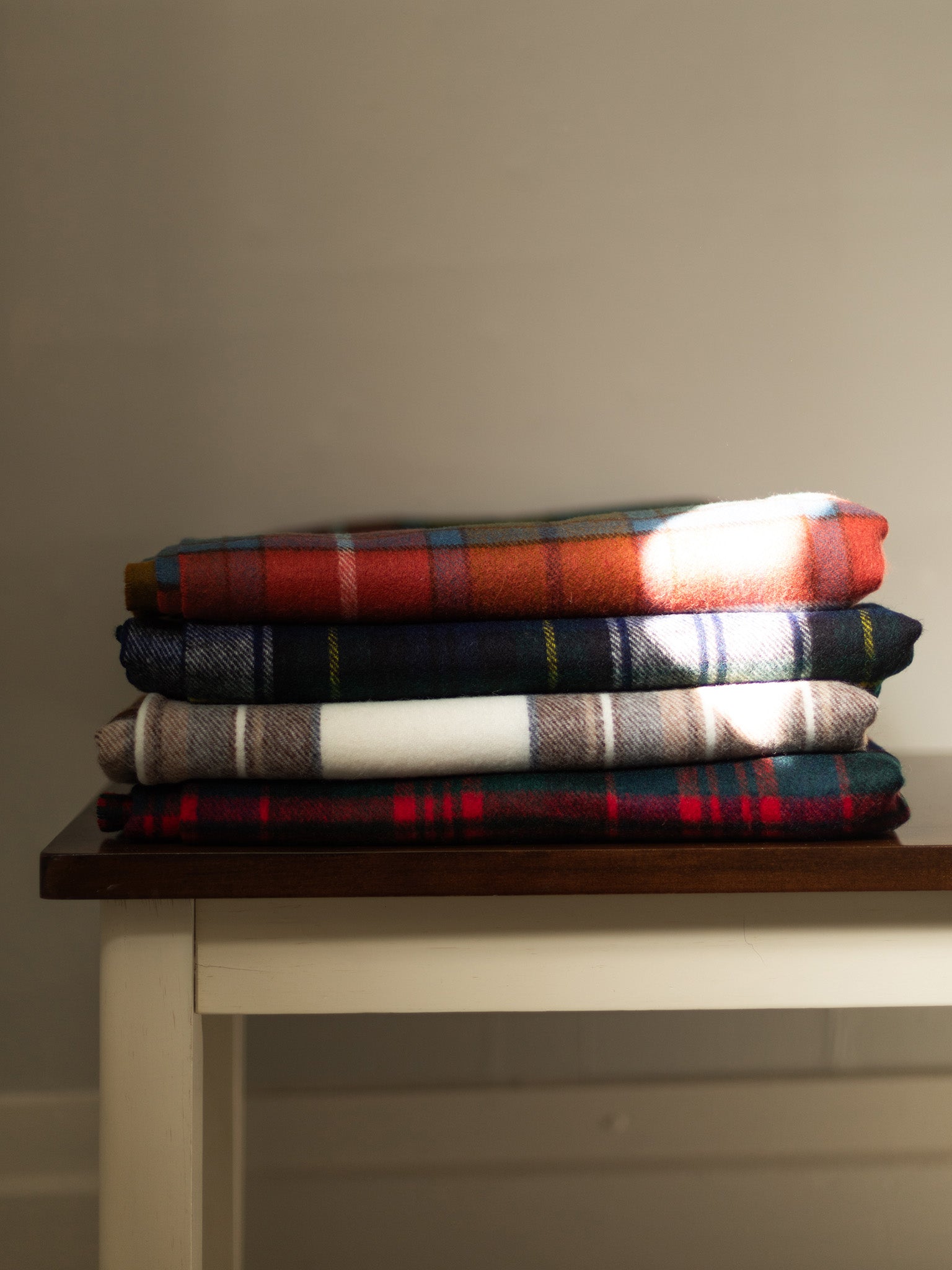These Highland Tartan blankets are woven from soft, pure merino wool, offering a warmth and gentleness that makes them a pleasure to wrap around yourself. Tartan patterns have long held meaning in Scottish history, representing clans and heritage, so each blanket carries a piece of that story.