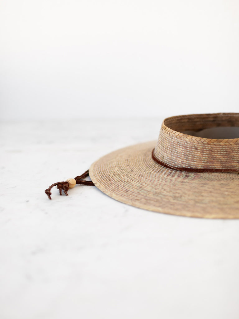 A grosgrain sweatband keeps it comfortable, and a leather chin strap with a wooden bead ensures it stays in place on breezy days. One size fits most, making it easy to slip on for long afternoons outdoors. It’s the kind of hat you’ll reach for again and again, whether you’re planting, picking, or simply enjoying the golden hours of the season.