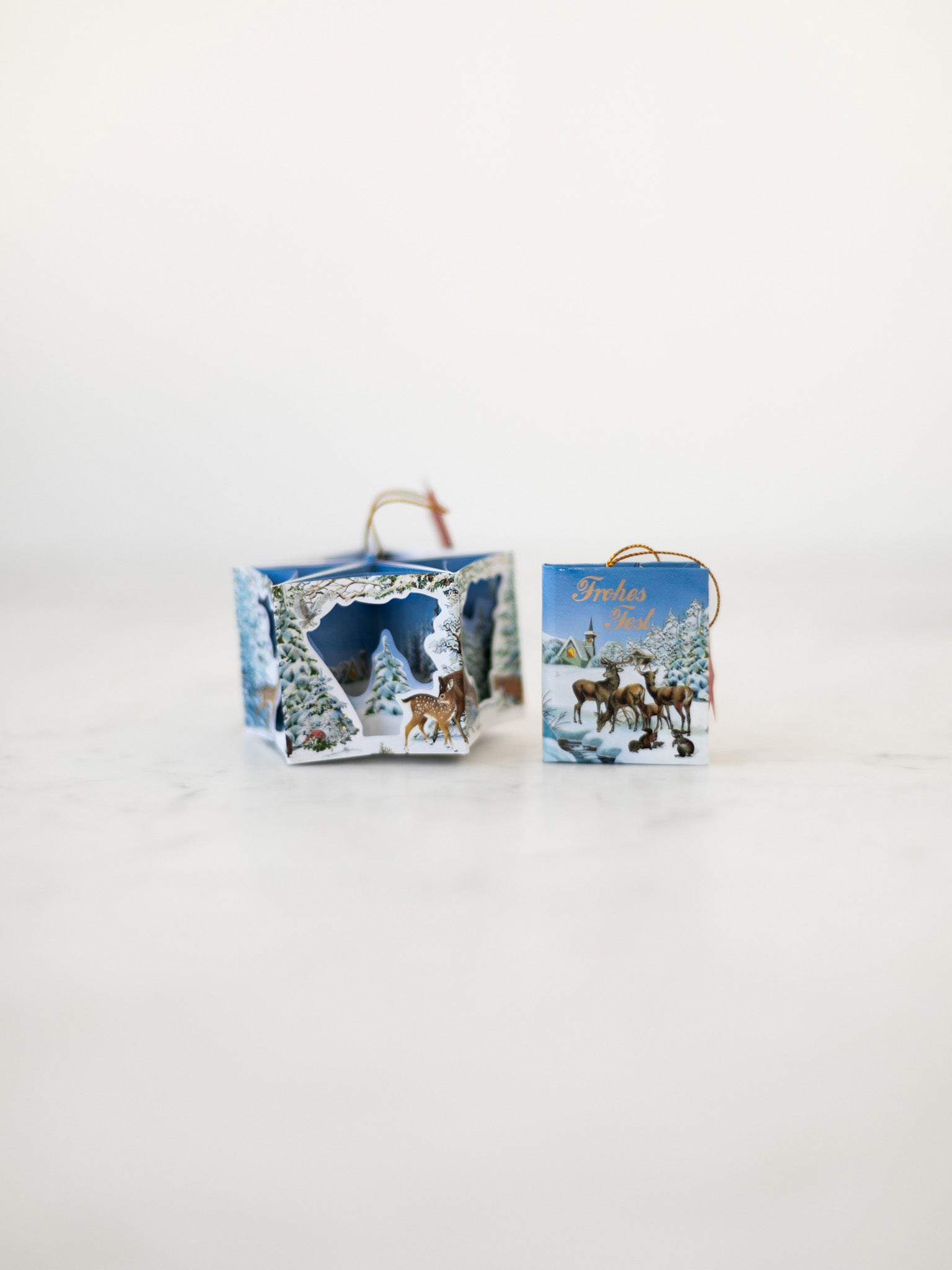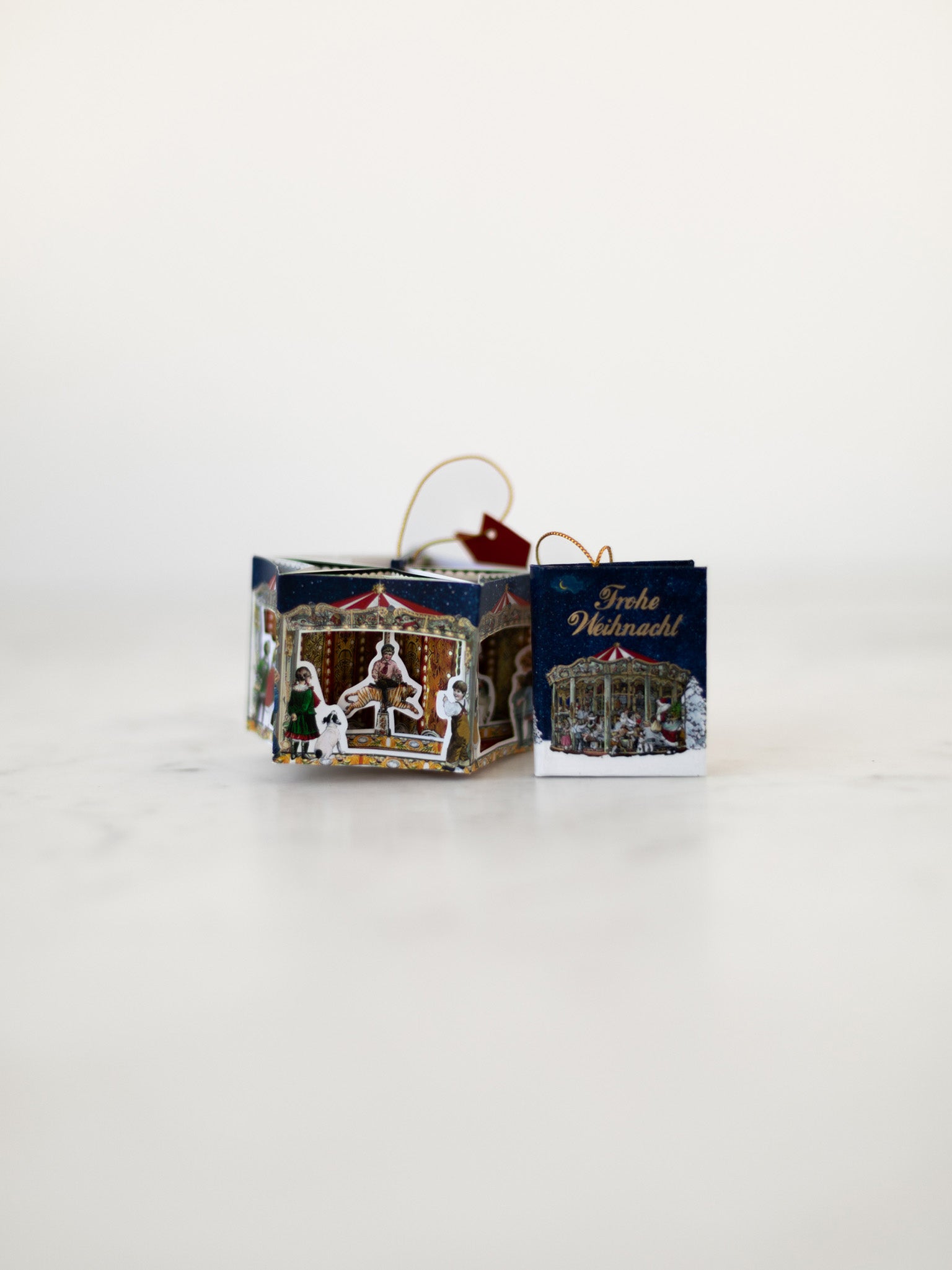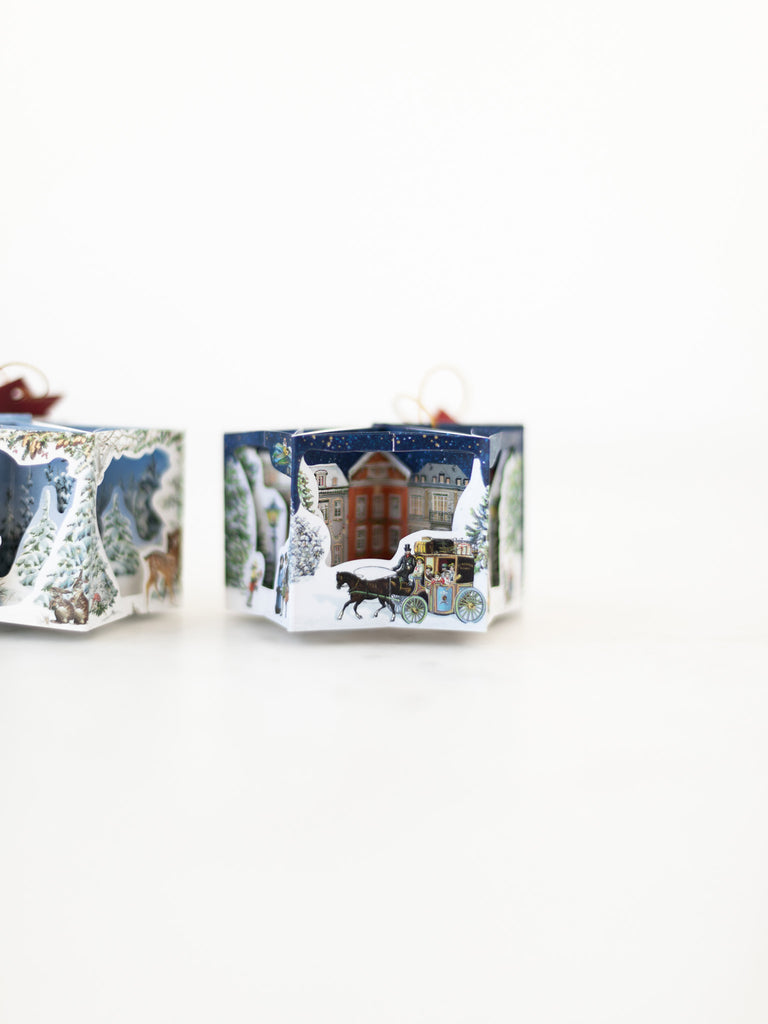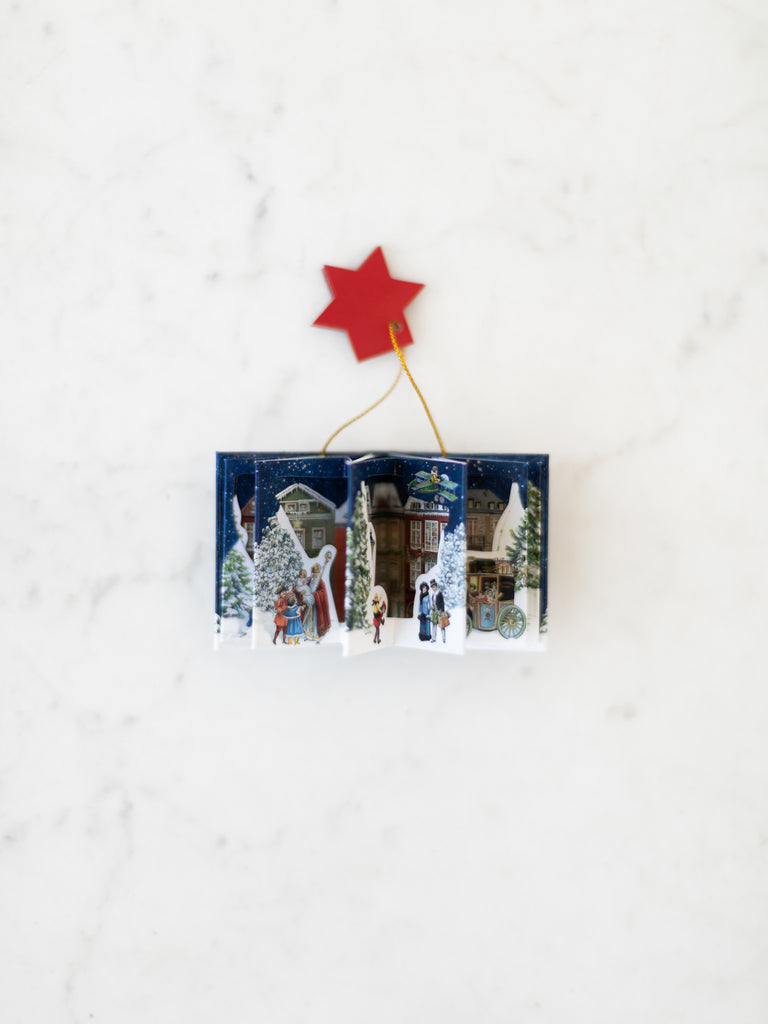 Give your holiday decorations a literary touch with these Pop-Up Mini Book Decorations. Each book folds out to a pentagonal shape, held open with a magnetic closure with intricate pop-up details that look charming when seen from the side. Adding a touch of whimsy to any tree branch, these decorations bring warmth and personality to the holiday season.