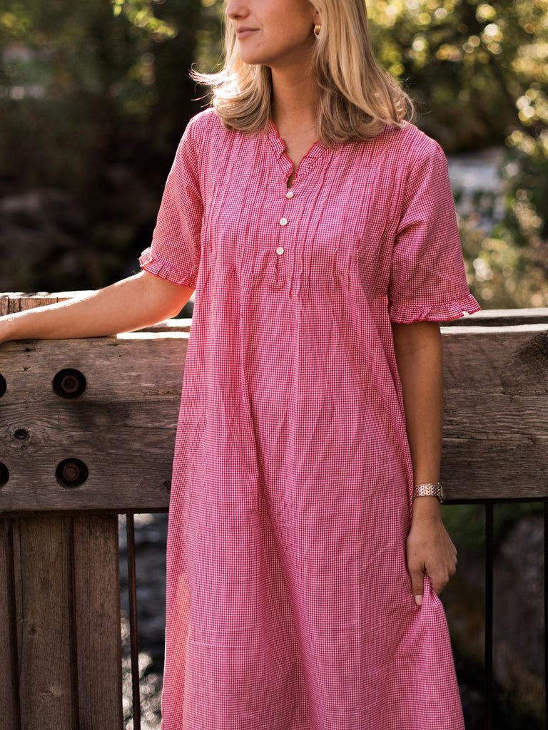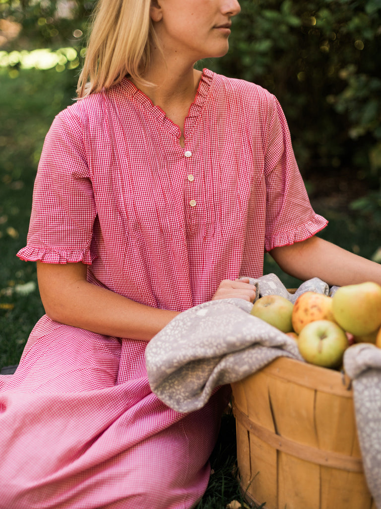We couldn't be more excited to introduce our newest additions to our nightgown collection. Our gingham cotton nightgowns (long-sleeve and short-sleeve) are just right to wear around the house with a touch of class and comfort. Curl up to read a story, lounge around the house in the evening, or wear it while celebrating the holidays. Cotton nightgowns make great pajamas any time of the year, and we hope they make you feel lovely.