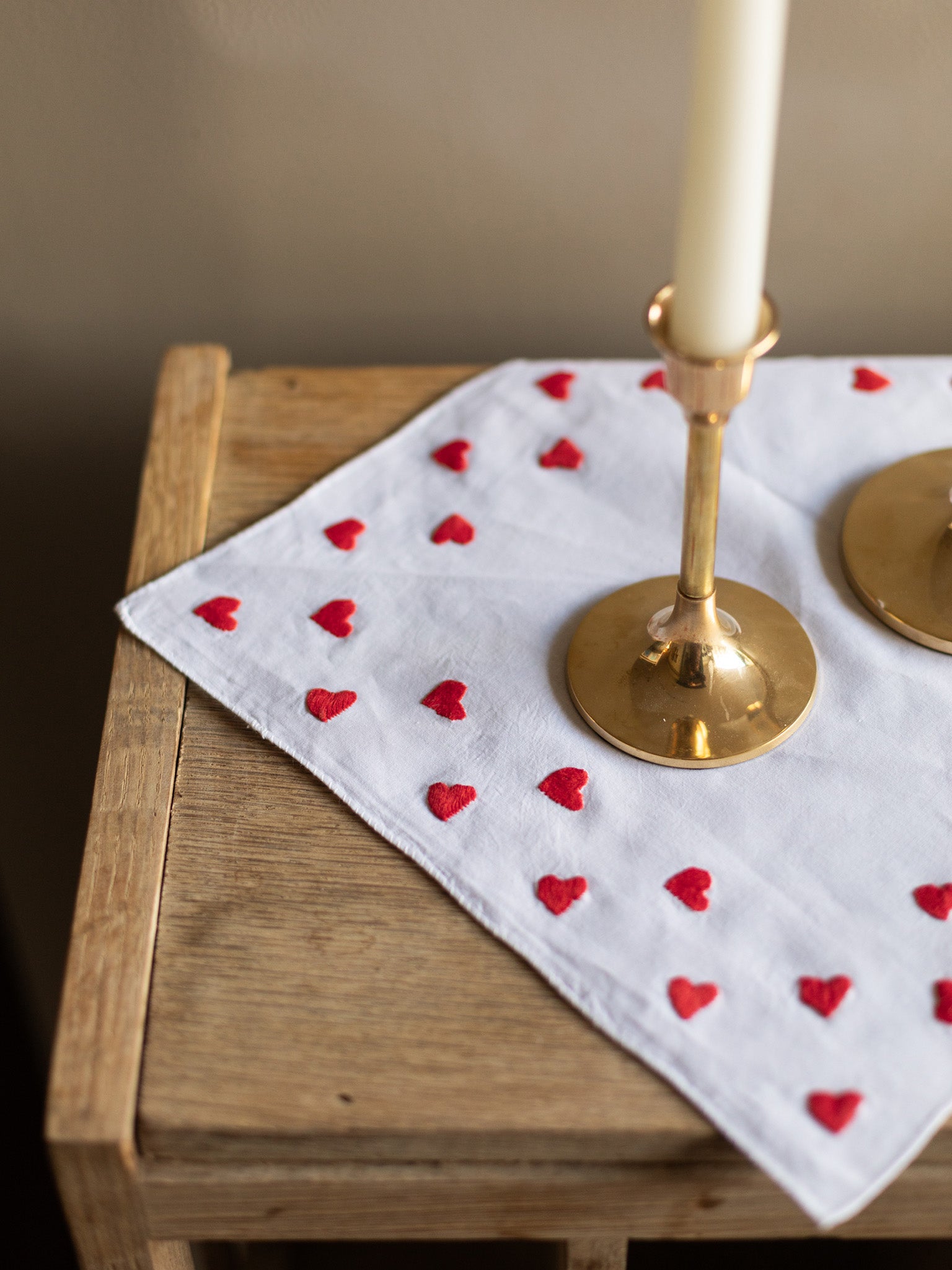 This soft cotton handkerchief is stitched with tiny red hearts. Whether it’s wrapped around a gift, tucked into a suit pocket, or passed along as a keepsake, it’s the kind of thing someone might hold onto for years. Light and lovely, it’s a quiet little gesture that says more than you’d think.