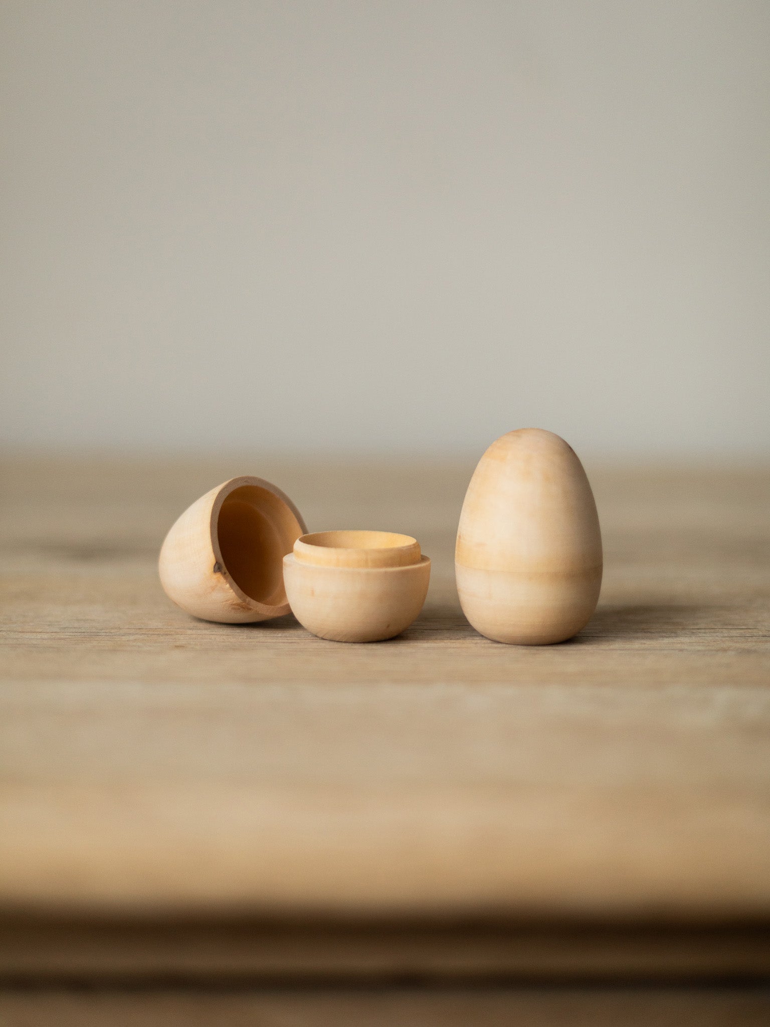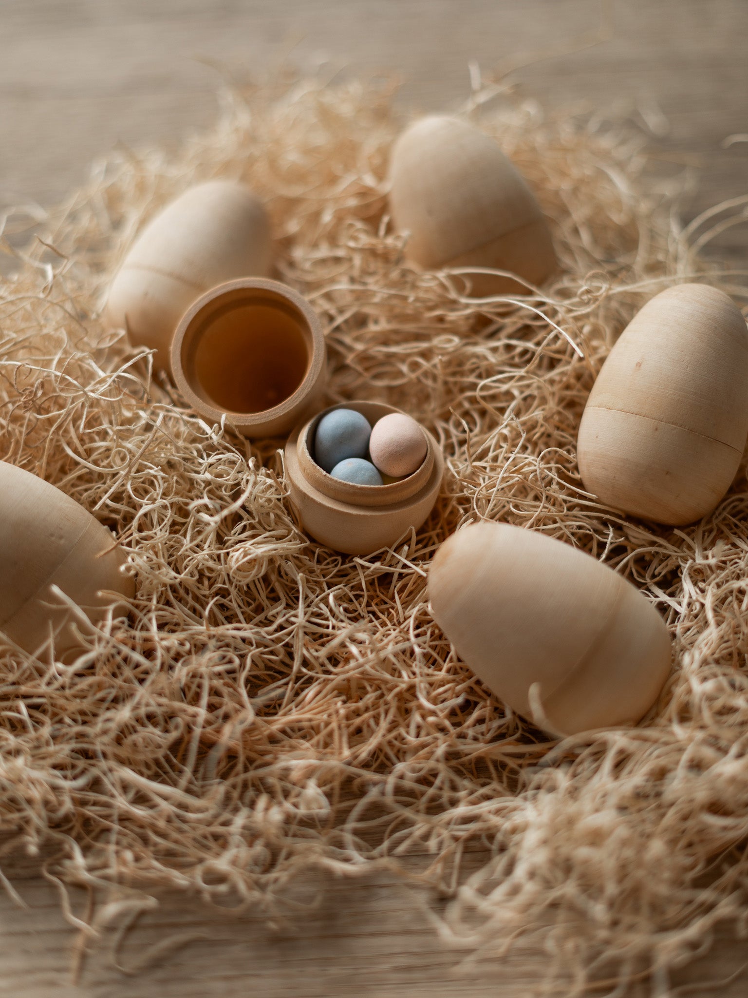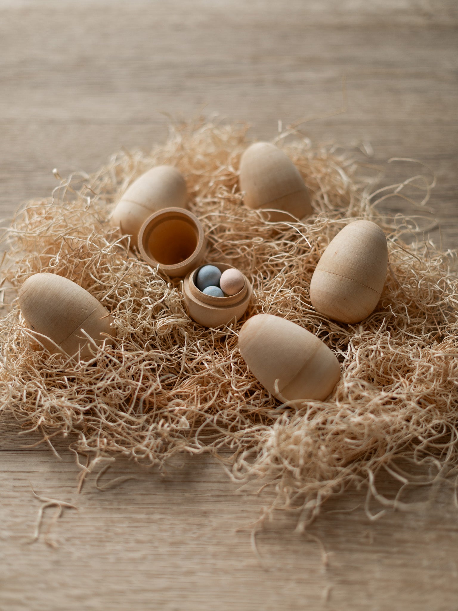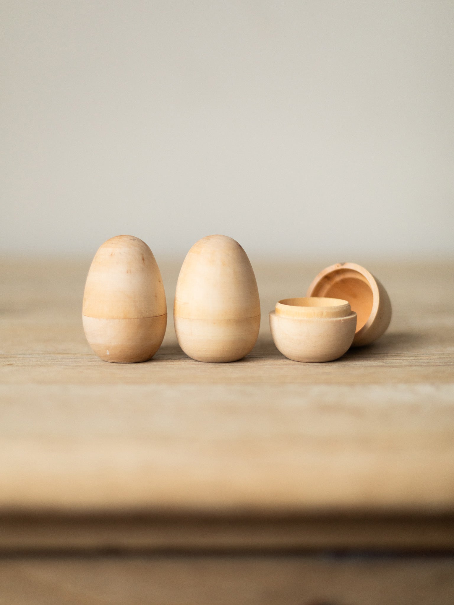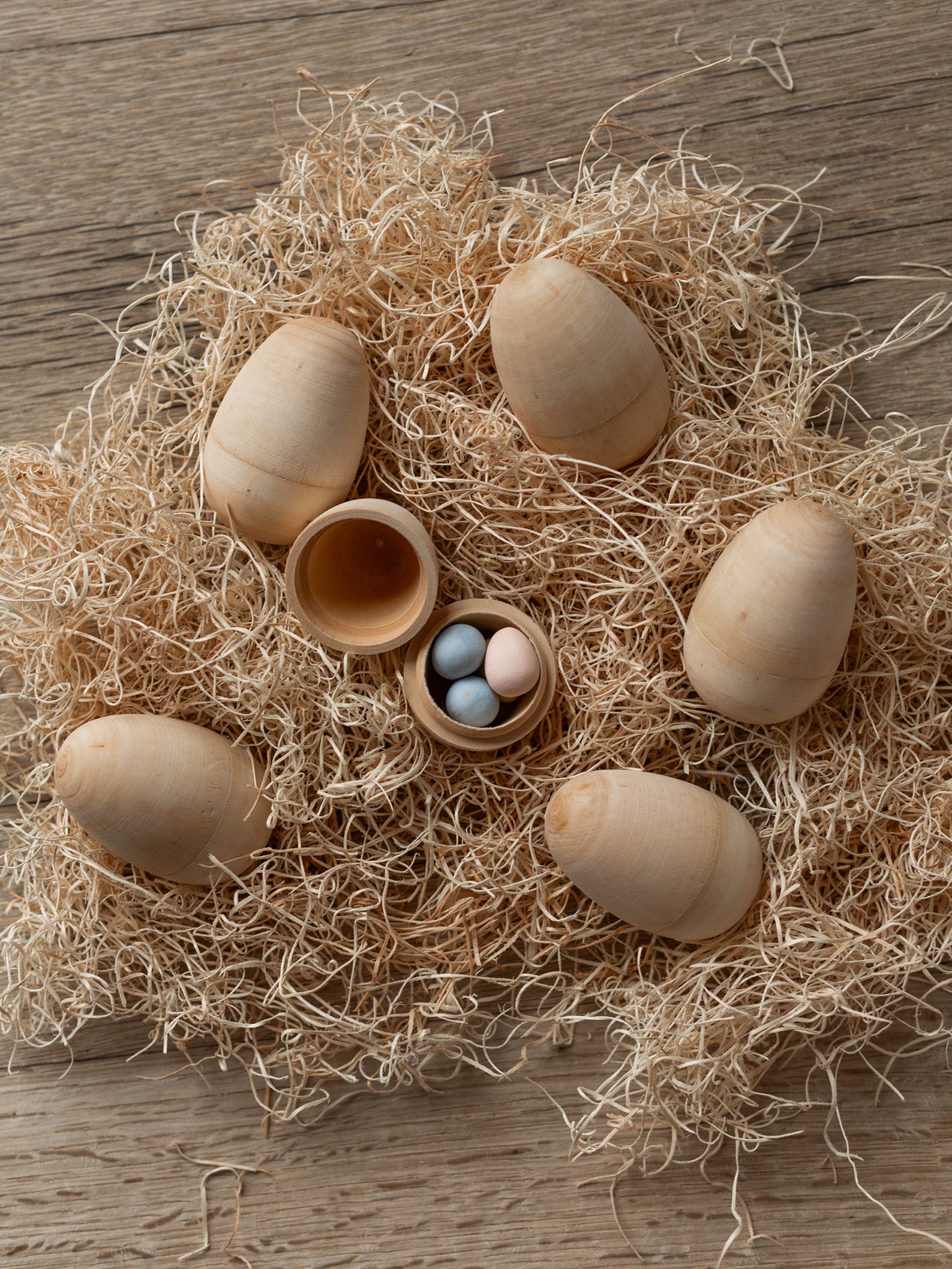 Natural Hollow Wooden Eggs - Set of 6