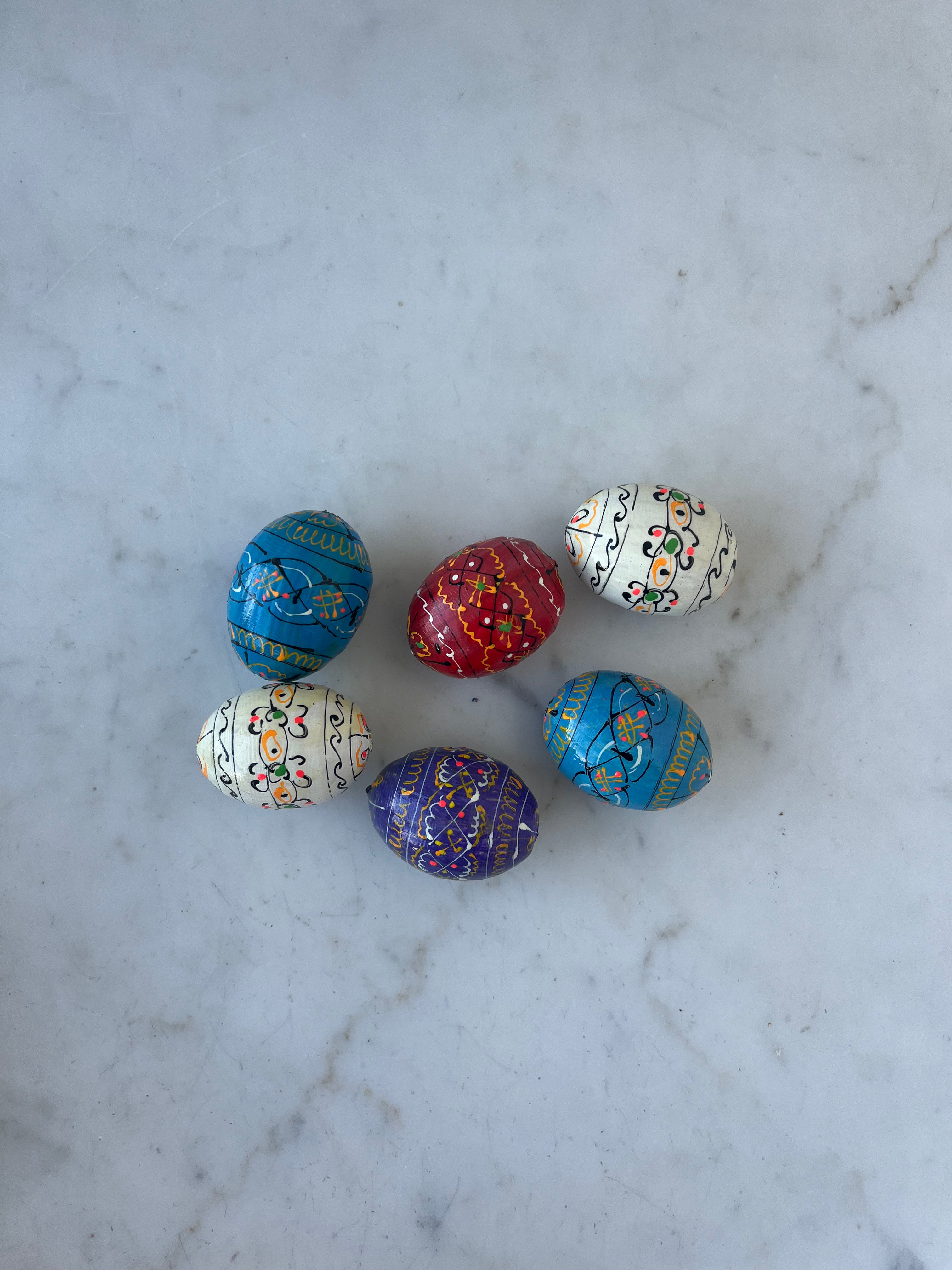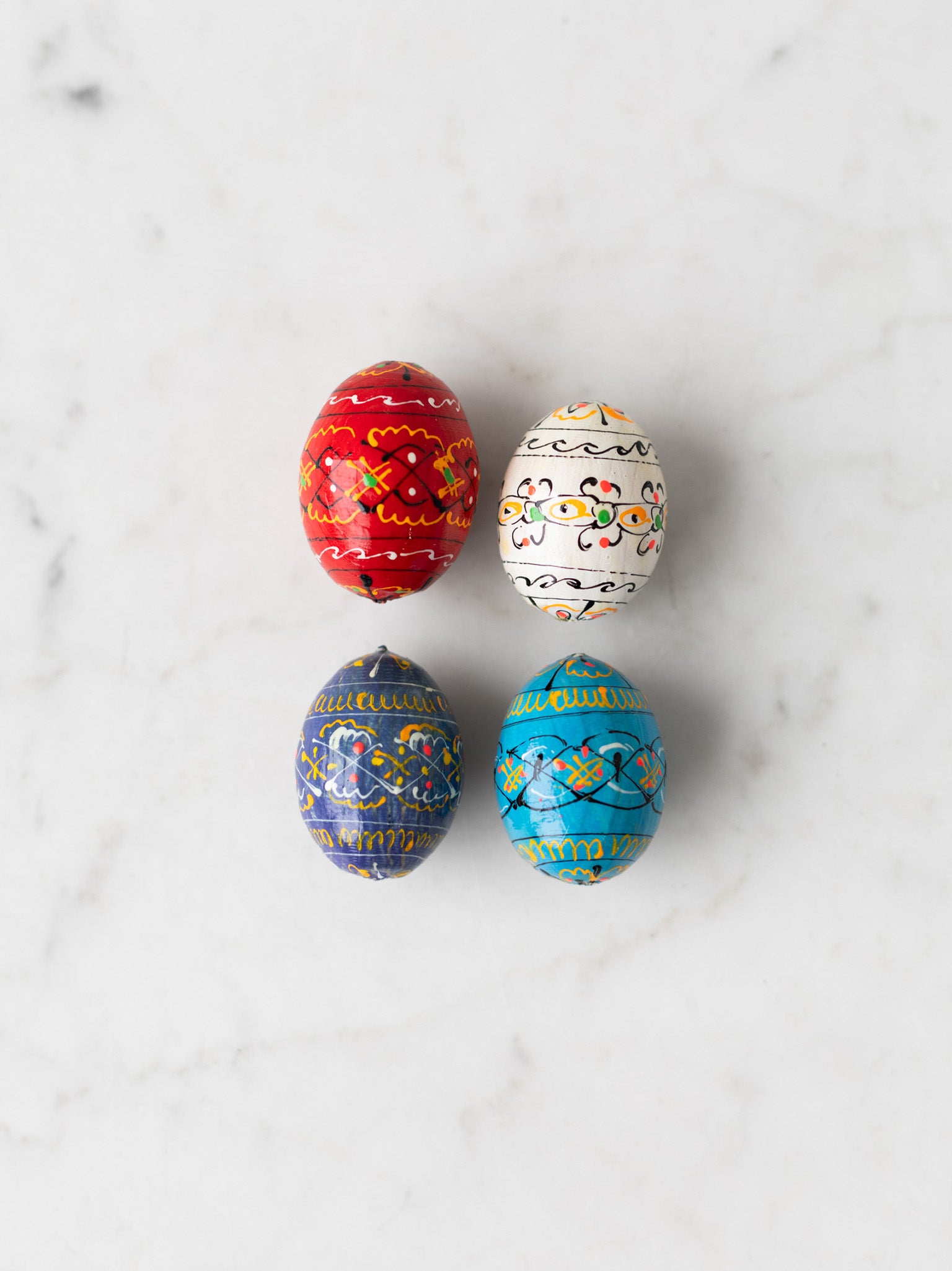 Add the brightness of springtime to your home with assorted wooden eggs hand-painted in Ukraine. Whether you keep them in a bowl on the kitchen table, in a glass vase on the mantle, or hidden throughout your home in the weeks leading up to Easter, their happy colors and designs will bring the vivacity of the season to your surroundings.
