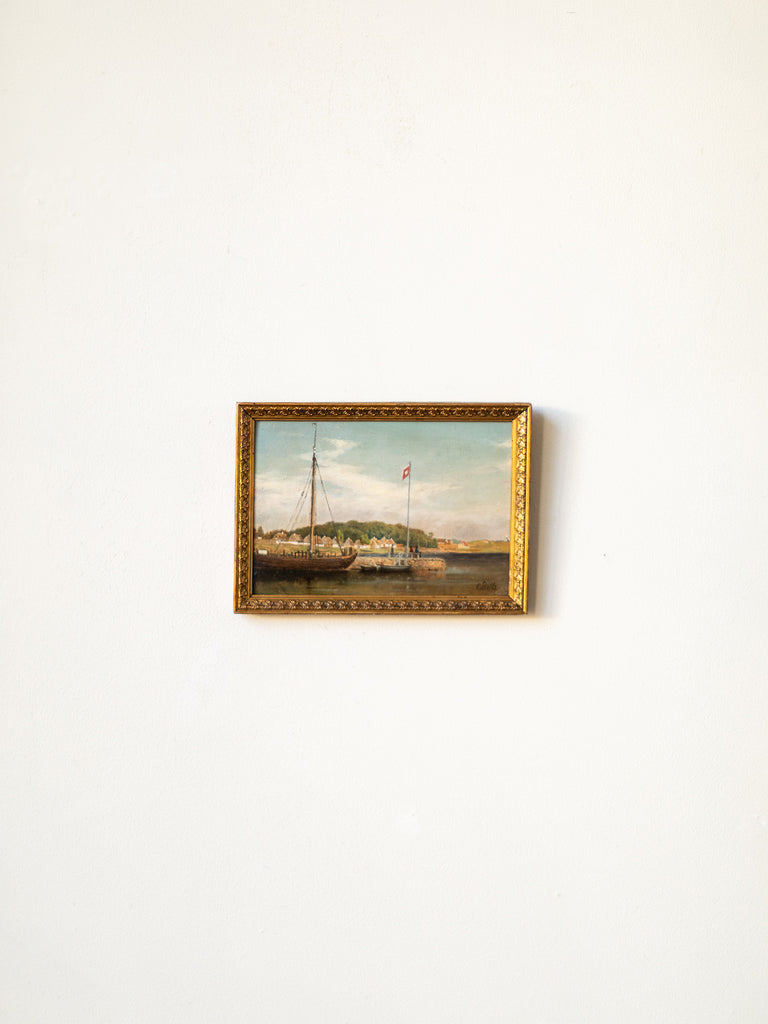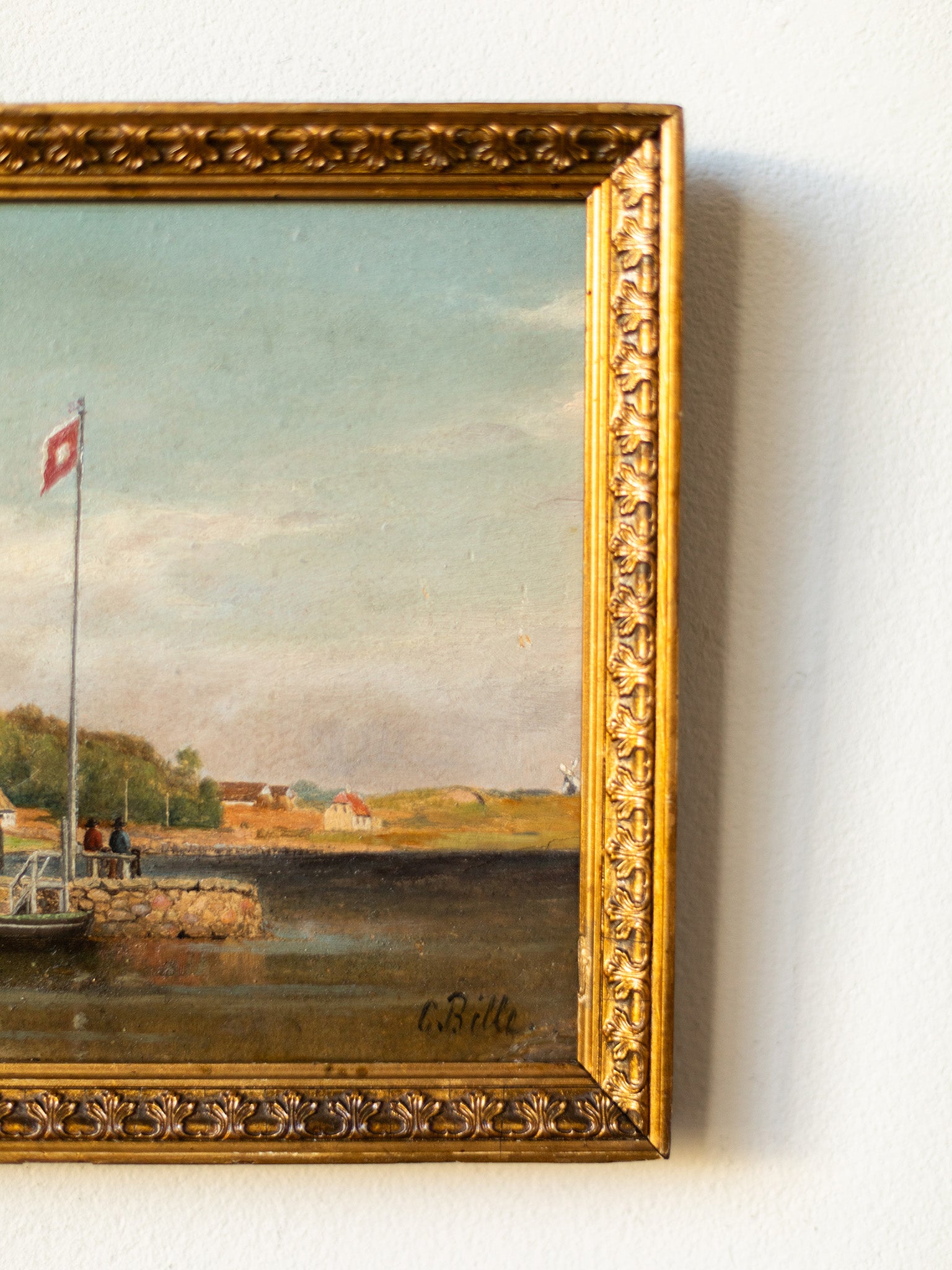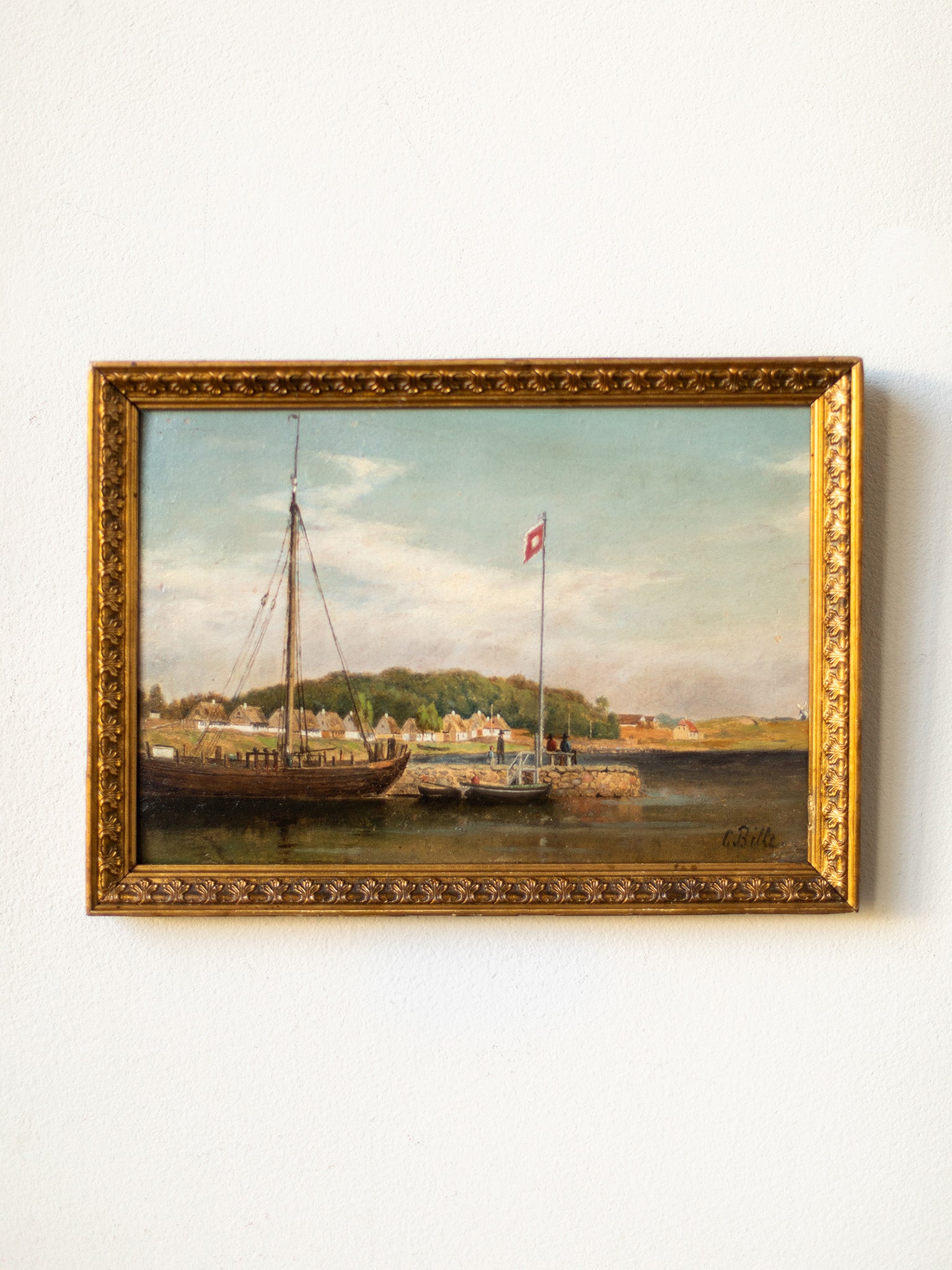 Although he never received formal art training, Bille’s years at sea gave him an intimate understanding of ships, waters, and harbors that few artists could rival. This rare blend of experience and artistry allowed him to combine romance with realism, a hallmark of his work. Presumably Dragor, Denmark portrays the peaceful harbor of the historic fishing village just south of Copenhagen, capturing its quiet beauty and enduring maritime spirit.