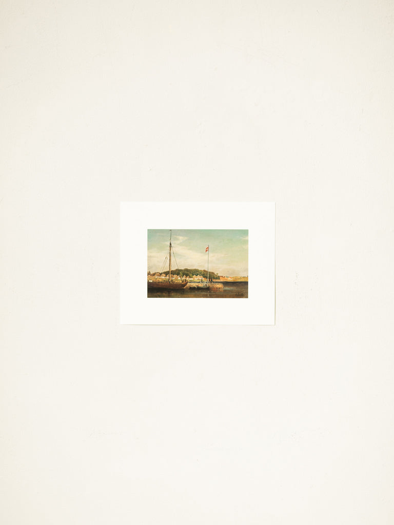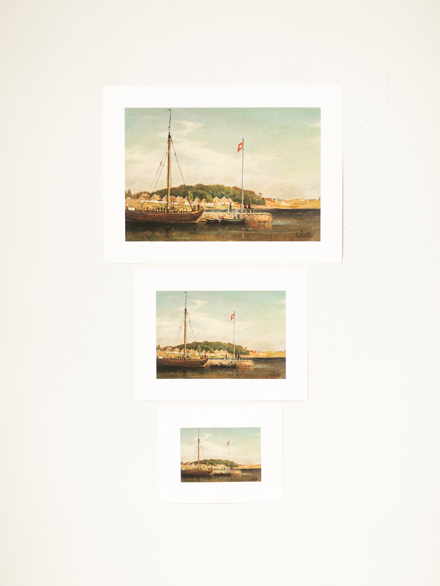 Although he never received formal art training, Bille’s years at sea gave him an intimate understanding of ships, waters, and harbors that few artists could rival. This rare blend of experience and artistry allowed him to combine romance with realism, a hallmark of his work. Presumably Dragor, Denmark portrays the peaceful harbor of the historic fishing village just south of Copenhagen, capturing its quiet beauty and enduring maritime spirit.