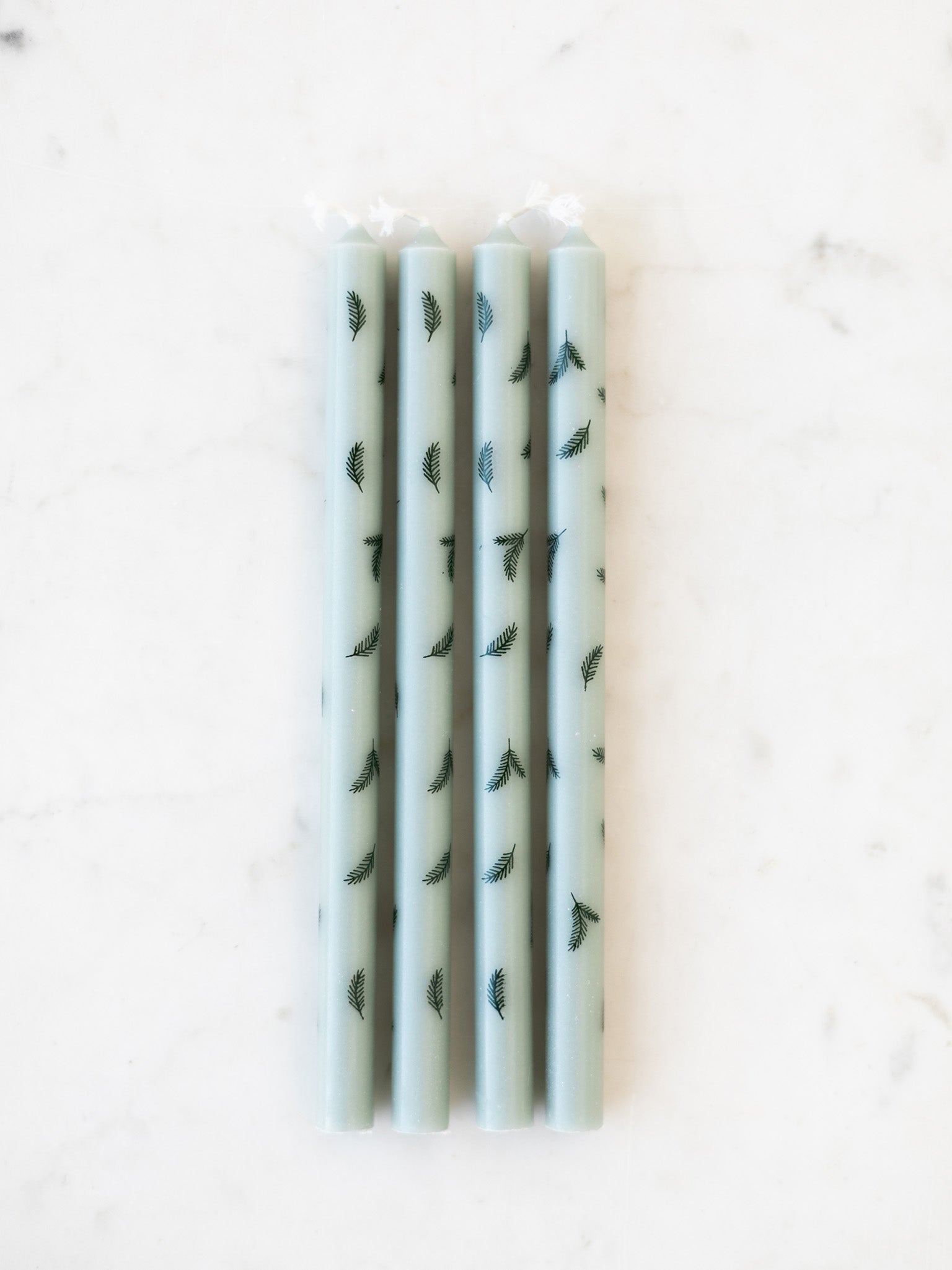 These taper candles are decorated with simple green spruce designs that feel just right for winter or the Christmas season. When lit, they cast a soft, inviting glow that makes any room feel cozy. Place them on your table or mantle to bring holiday warmth to your home.